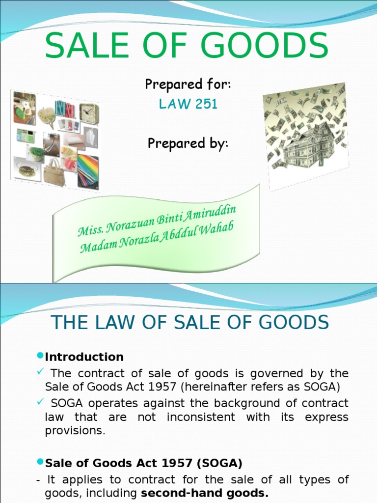 The current test emphasizes on fitness and usability, scant regard is given to durability, minor defects this paper aims to examine the existing malaysian laws specifically the sale of goods act 1957 and the consumer protection act 1999 in protecting. No tittle page preface introduction case name fact issues judgement formation of contract how contract of sale can be made subject matter pricing capasity terms. As per the provisions of the sales of goods act, sale is completed, when the goods passed to the buyer. Sale of goods act 1957. Even though the parties not mentioned in sales transaction, but it was understood by the both parties.